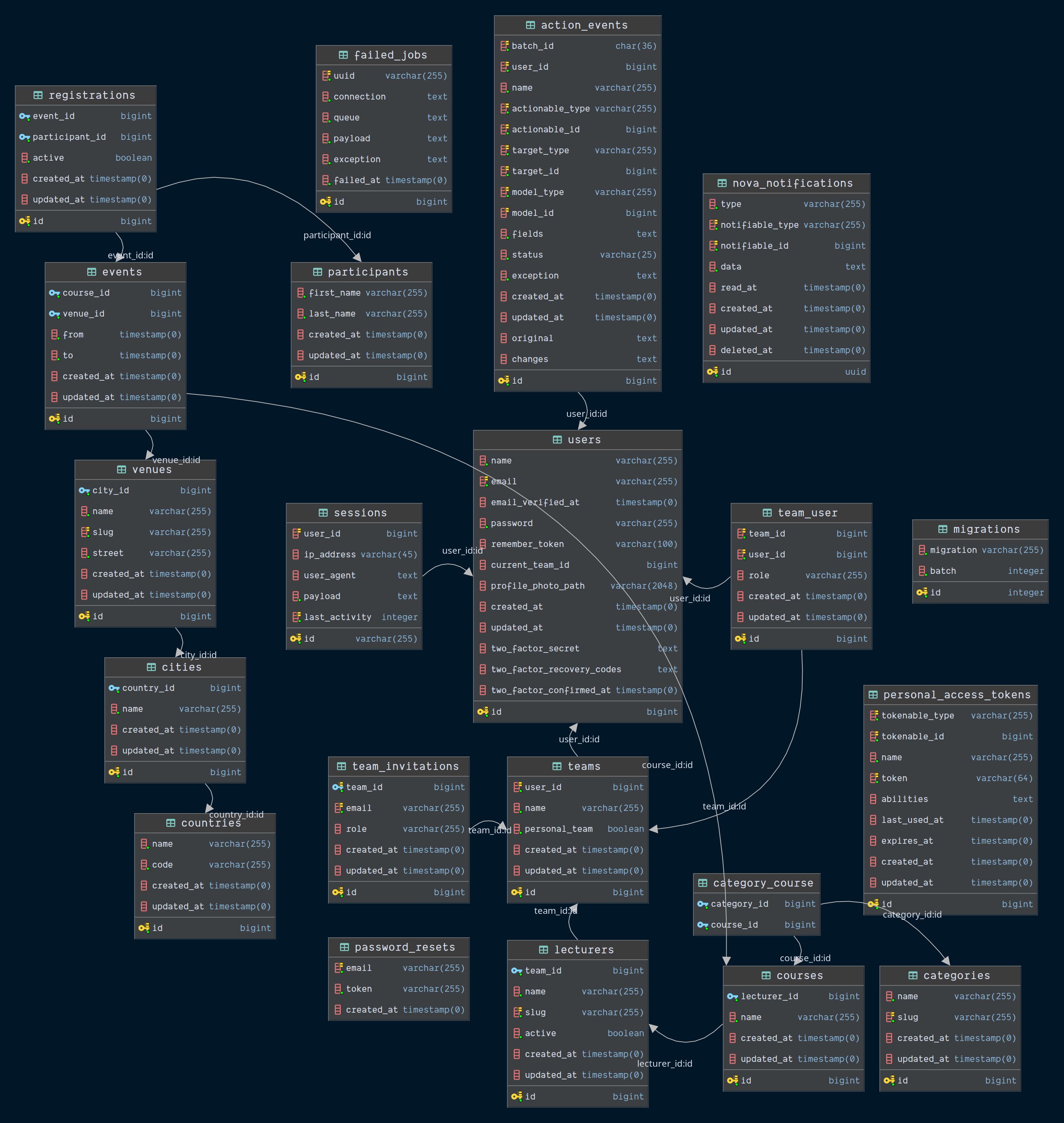 sessions table removed